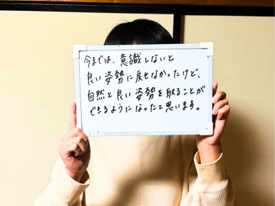 今までは意識しないと良い姿勢が取れなかったけど、自然と良い姿勢が取ることできるようになったと思います。